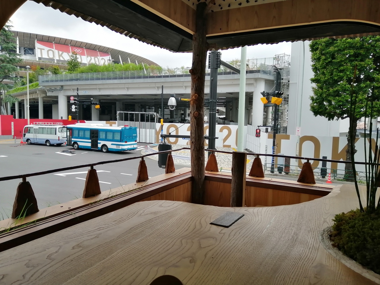 国立競技場の向かいにあるのは、建築家藤森照信の茶室「五庵」。1階の待合に入り、梯子で2階の茶室に上がると、国立競技場がよく見えます。入場は30分ごとの整理券をワタリウム美術館で入手する必要があります。- 旅行時期