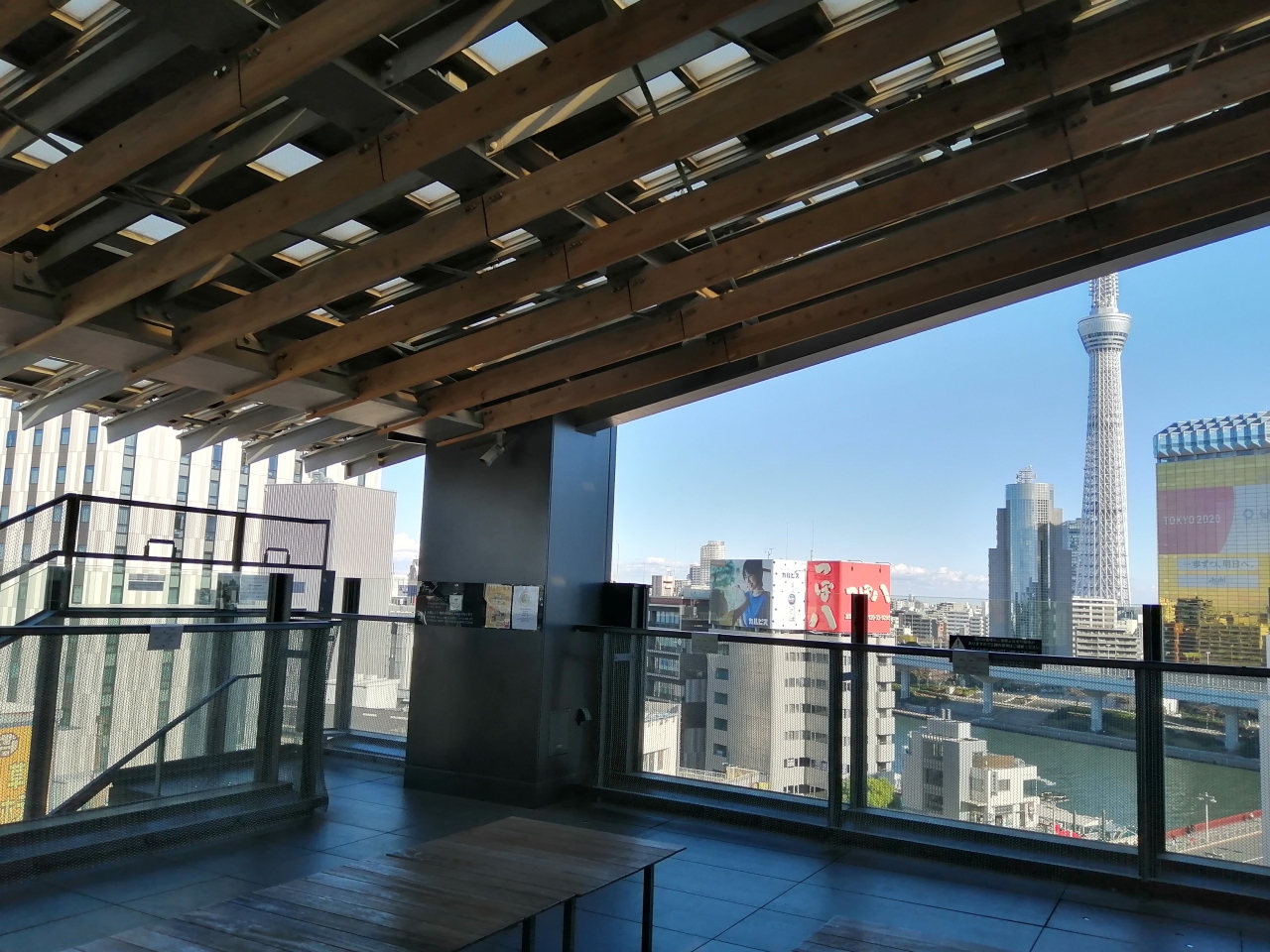東京を代表する観光地、浅草の雷門の向かいにある観光案内所などが入った複合ビルです。新国立競技場などと同じ、隈研吾の設計です。展望テラスだけ行きましたが、天気もよく、スカイツリー方面も浅草寺方面もとても眺めがよかったです。なお、隣にはカフェもあります。外国人観光客がいないので、空いてました。