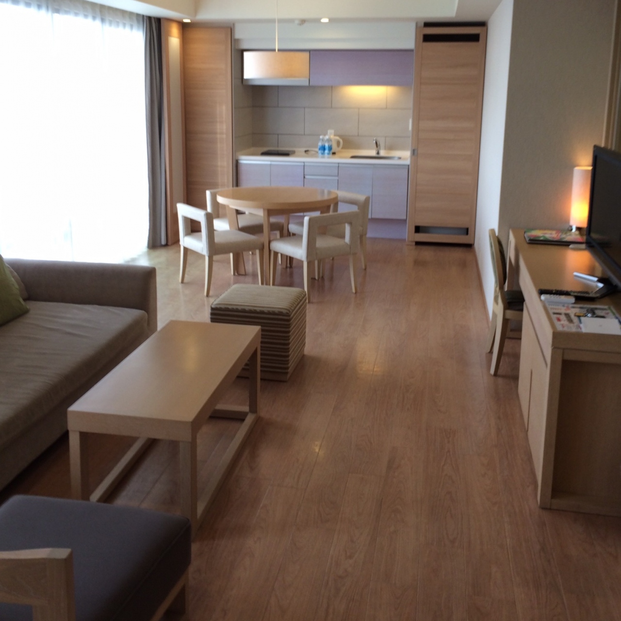 1泊では勿体無いくらい快適な時間が過ごせました。2ベッドのスイートで中型冷蔵庫も完備され、ホテル横には大型スーパーもあり、此処を拠点に連泊で利用したいと思いました。設備や施設なども綺麗に手入れされており気持ち良く使用出来ました。