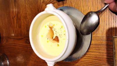 シェフの一番得意料理というフォアグラと卵黄を使った料理が感動的で全く脂っこくもなく香ばしいトリュフの香りが広がって、主人と何回も美味しい美味しいと言いながら食べました。