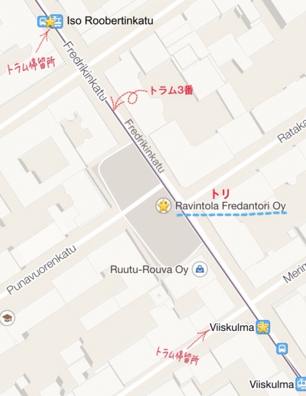 主要なトラムの停留所も、徒歩3分圏内に2つあります。(ヘルシンキ市内を循環するトラム2と3を、行き先に応じて停留所を選んで簡単に乗れますので、本当に便利です。)