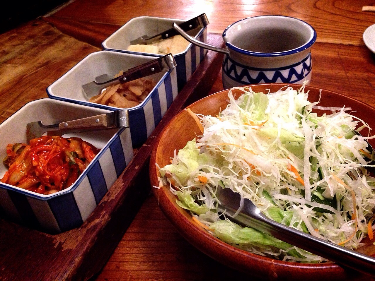 広いテーブル。落ち着く店内。盛り沢山のサラダはおかわり自由♪