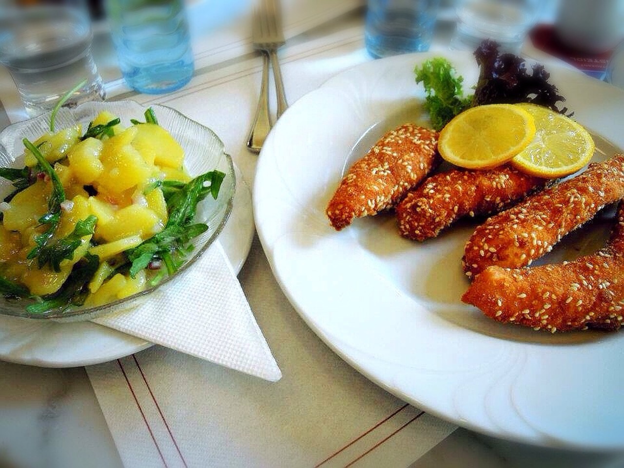 特にここのシュニッツェルは最高です。揚げ方も、塩加減も、いつ食べても満足です。