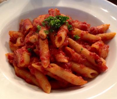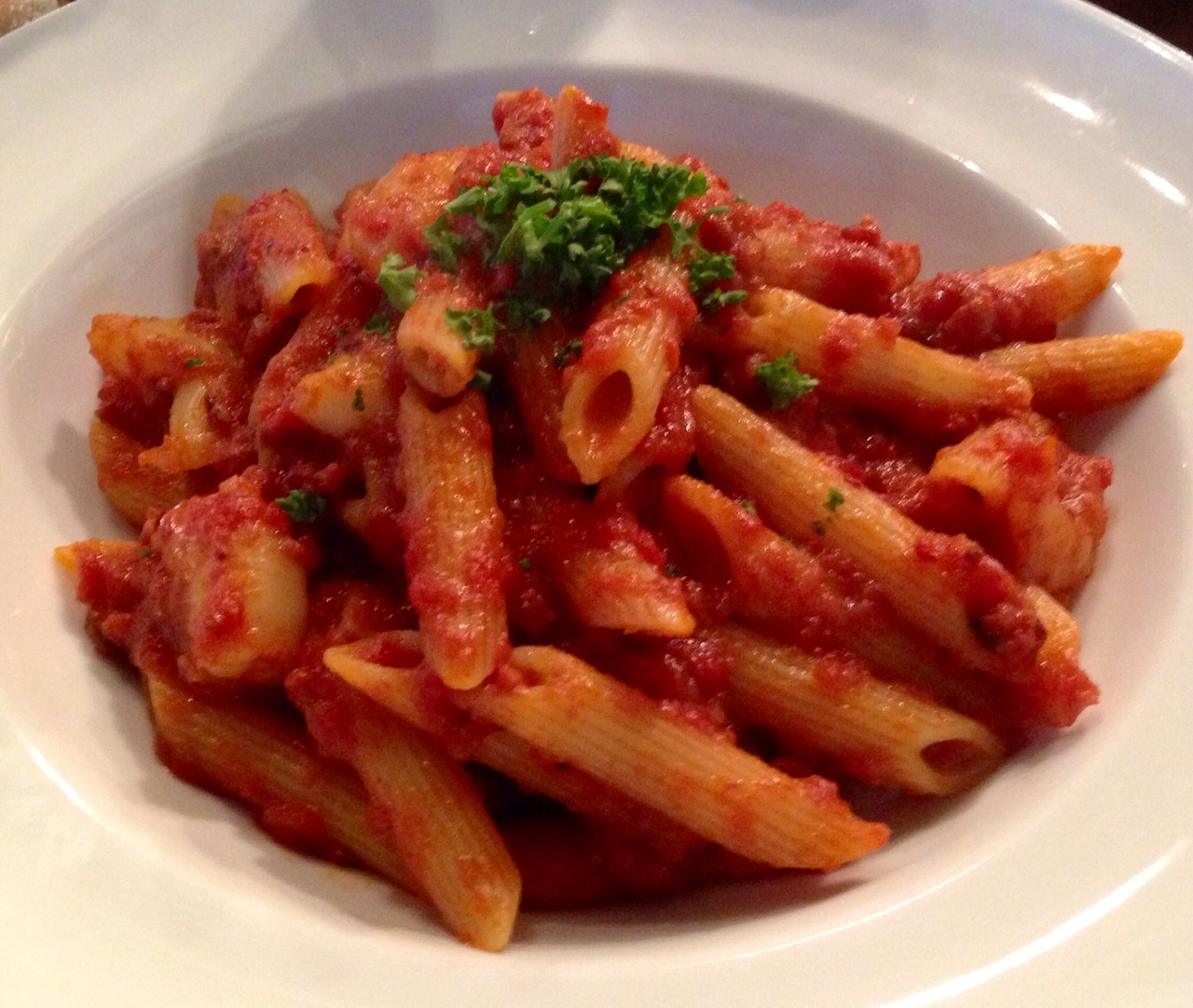 先日はお腹も空いていたので、私はペンネ・アラビアータを、同行者はシーフード・ジェノヴェーゼのピッツァを注文しましたが、どちらも満足の美味しさでした。