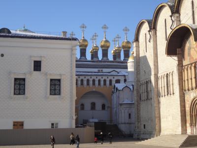 クレムリンの中にある聖堂です。帝政時代には、皇帝(ツァーリ)が戴冠式に臨んだ聖堂とのことです。なかなか威厳のある建物で、黄金のドームが印象的でした。