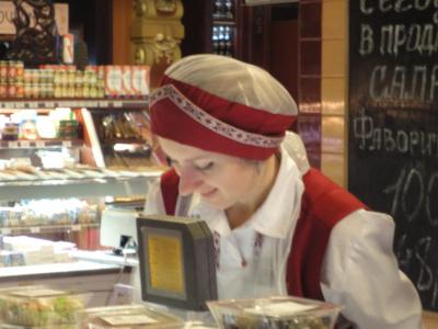 モスクワの高級老舗食料品店です。お菓子から、キャビアまで品揃え豊富、お土産探しにももってこいです。