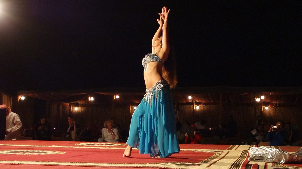 どうせどこかで晩ごはんを食べるのなら、砂漠でベリーダンスのショーも見れるしということで、エミレーツ航空のドバイ・ストップ・オーバーで予約しておきました。