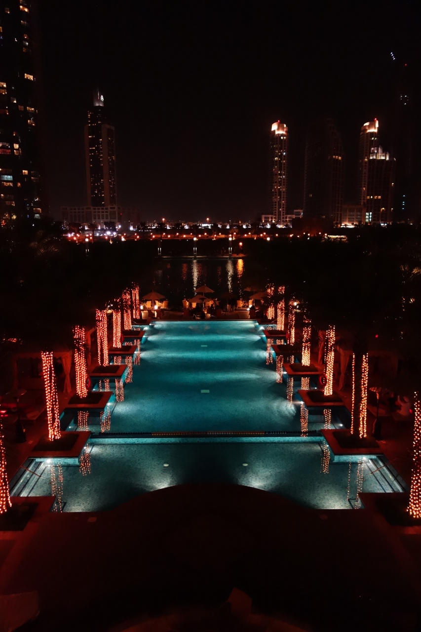 ライトアップされたプールと輝くブルジュ・ハリファが美しかったです!