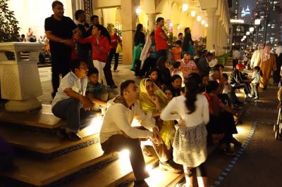 5分間の噴水ショーです。噴水の高さは最高150メートルで、50階の建物に相当するらしいのですが、背景にブルージュ・ハリファがあり、あまり実感がわきません。