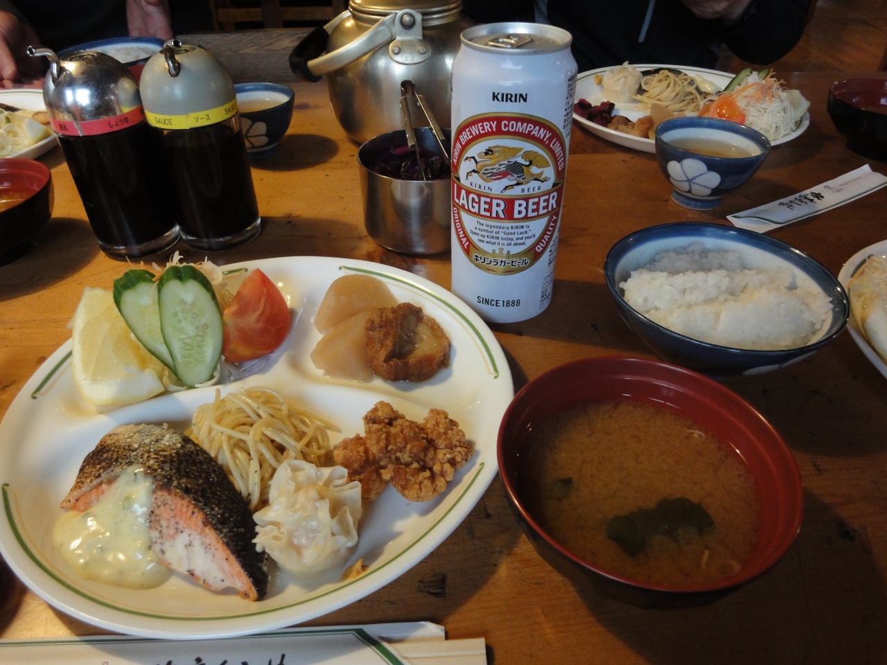 富士山山頂の山小屋ですから、多くは望めません。富士山山頂では平均的な山小屋といったところではないでしょうか。トイレも含め、内部は綺麗なほうだと思います。夕食はカレーのみでした。寝るスペースは小さな布団1枚分です。お隣の方とは、非常に接近していますから、アイマスク・耳栓が有用だと思います。