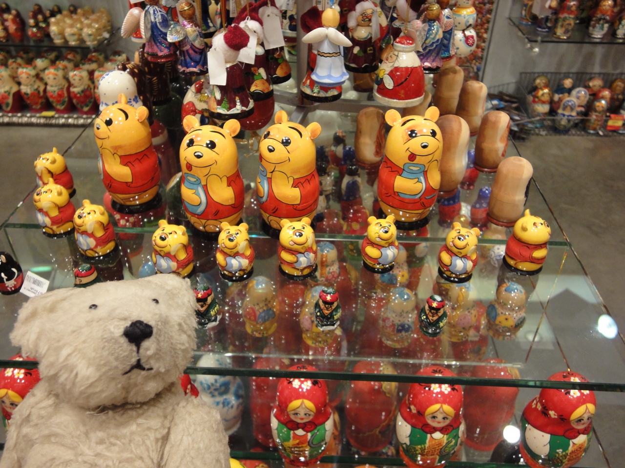マトリョーシカから毛皮の帽子まで、ロシアチックなおみやげは、ひととおり揃っています。日本語のガイドブックにも載っているお店ですから、お店の人の日本人対応も馴れたものでした。