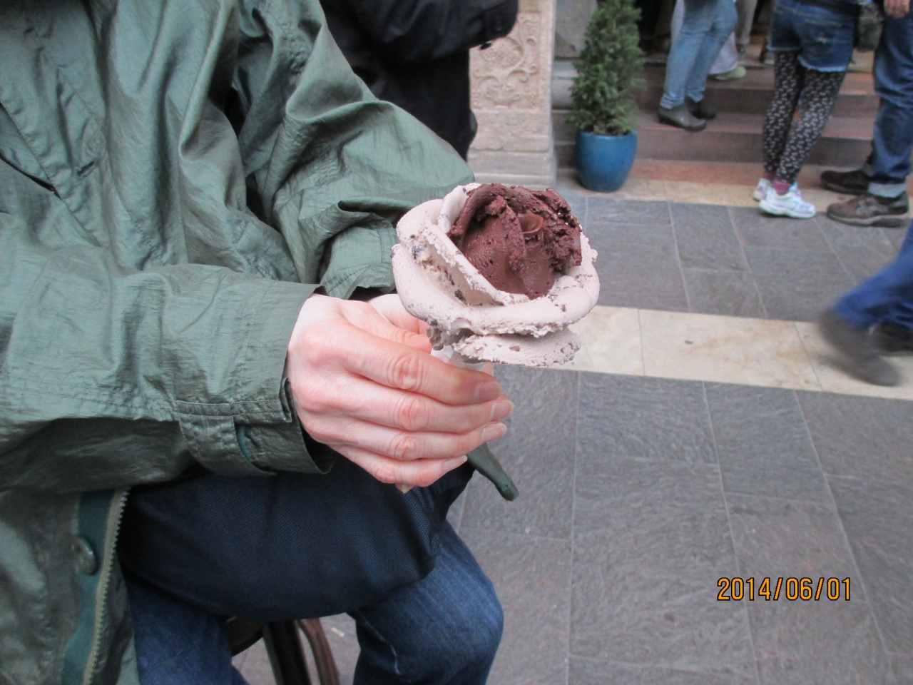とにかくブタペスト人気のアイスクリーム店で昼間は沢山の観光客も賑わう場所(大聖堂前)でとても並ぶ状態で無く、たまたまホテルが隣で夜20時過ぎに様子を見たら少し空いていたので、食べたくて並びました。 アイスクリームを上手く花柄上にアレンジして食べるのがもった無い感じです、味は乳脂肪分多いのかコクのある贅沢な味わいです。