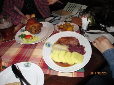 レシピから一ぶですが、例として生ビール(0.5L)で75Ks(約380円)チャコではビール工場内のレストランでも約150円程度です、豚の骨付き煮込み1kg程度で一番人気319Ks(1600円)コーラ55Ks(170円)です。(酢漬けソーセージ、スモークポーク、ポテトフライ)+サービス料が付いて請求されますので、Tipは不要です。