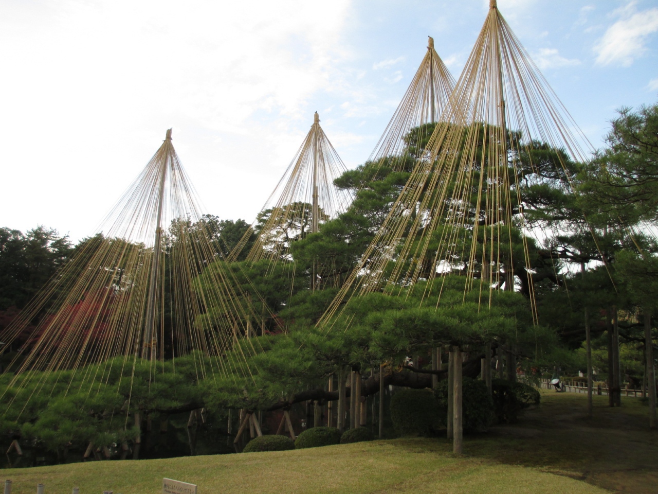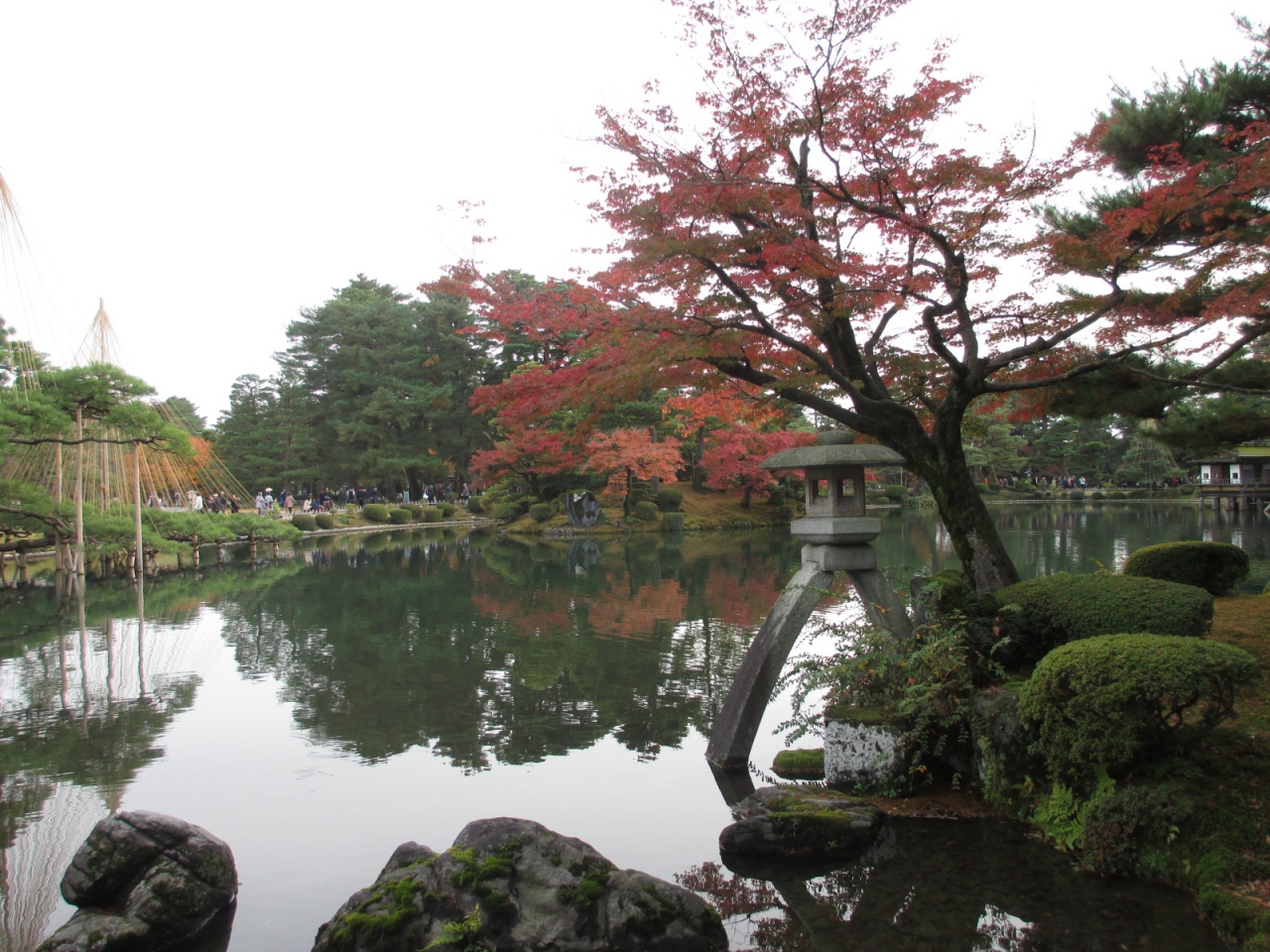 兼六園の紅葉季節と大きな松等が重い雪質で折れない吊り縄された伝統美と紅葉がコントラス良く素晴らしい名園の一つです。 公園スペースは約1,5時間有れば大まかな周遊出来るスペースです、又、65歳以上は無料で公園を愉しめる市民の憩いな場所でしょう。