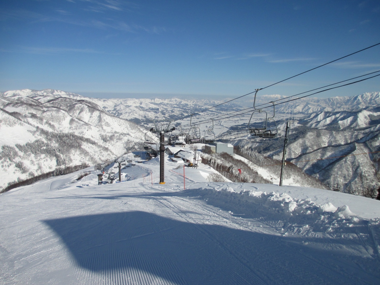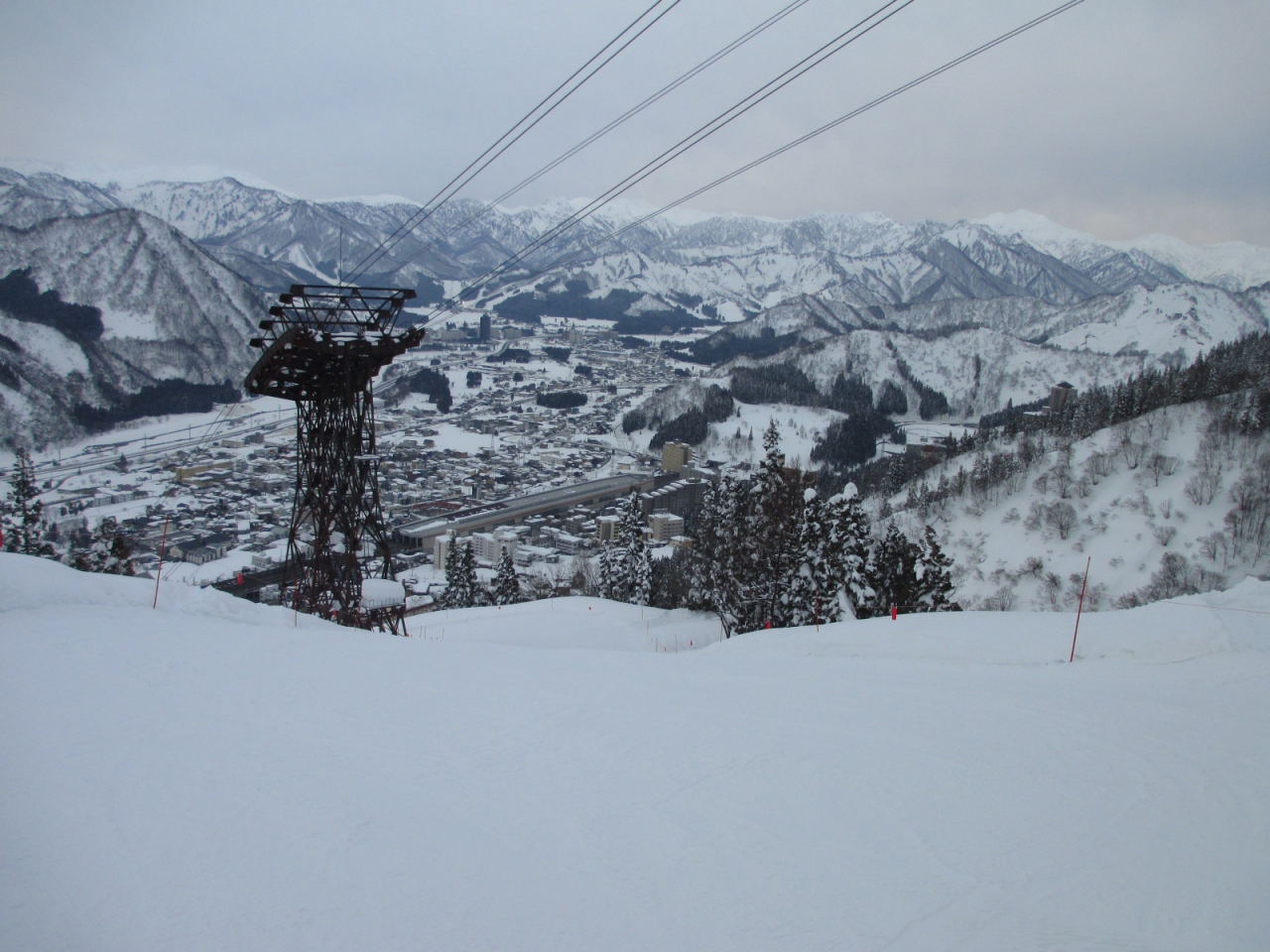 このスキー場は湯沢駅からのアクセス良く、温泉ホテル街と直接した便利な場所で、更に世界最大のゴンドラ(100人乗り?)で一気に1000m程度を7分程度行けます。