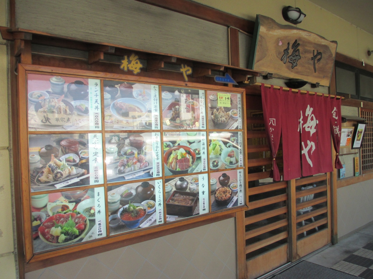 ここではいつも地場鮮魚(春なら生しらうお、桜エビ等)の刺身やうなぎを捌きながら焼いて食べさせる”梅や”さんは落ち着いて食べれる和風料理店です。