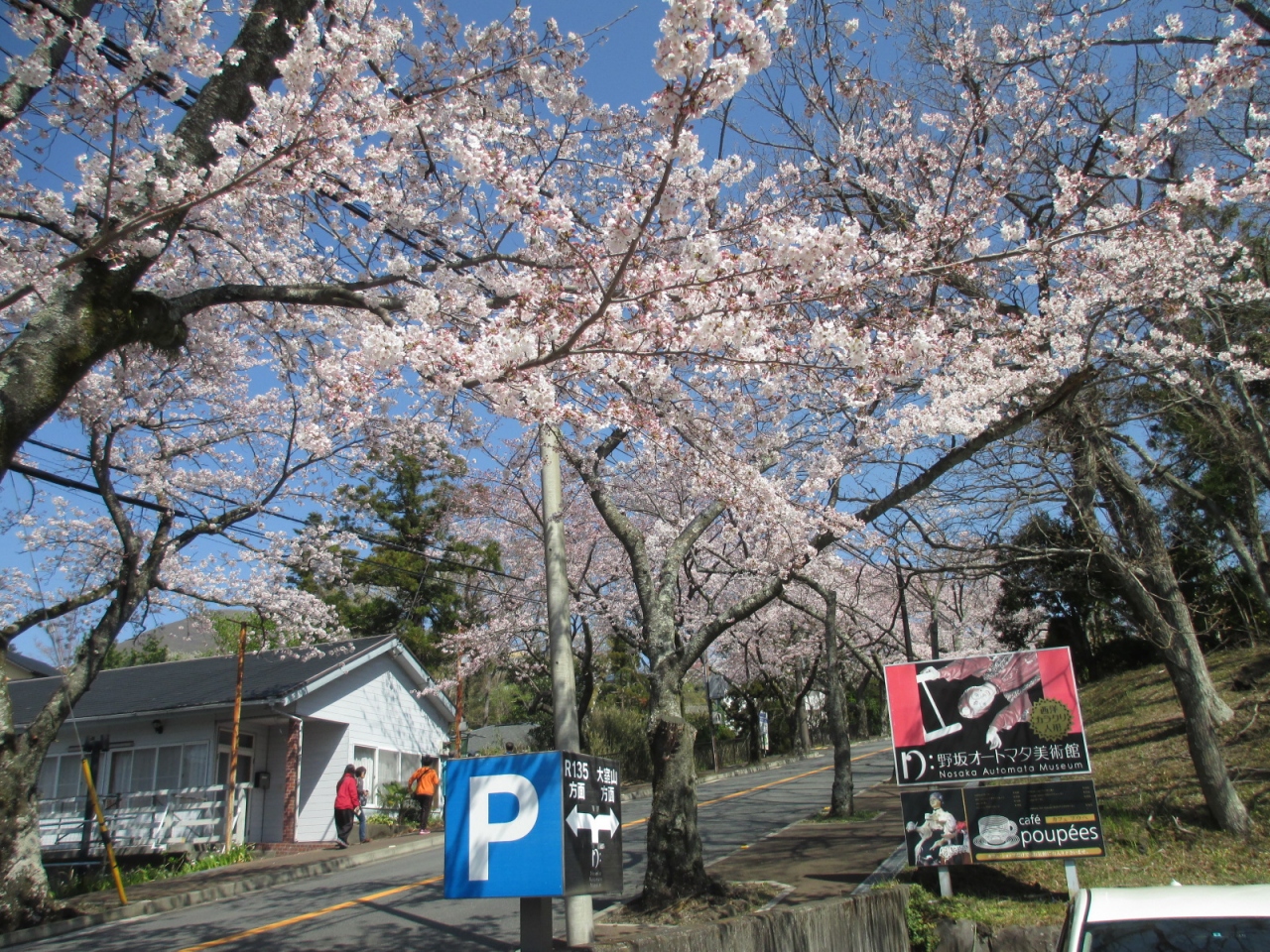 伊豆高原駅から近く、高原別荘群に高台に向かう道路が桜並木で樹齢20~30年近くの若い樹木で、桜が満開時には素晴らしい風景でした(2015年3月31日)。