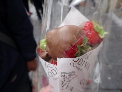 チョコレートのかかったイチゴ(6.50ユーロ)を食べましたが、甘酸っぱいイチゴとチョコレートがよく合っていてとてもおいしかったです♪