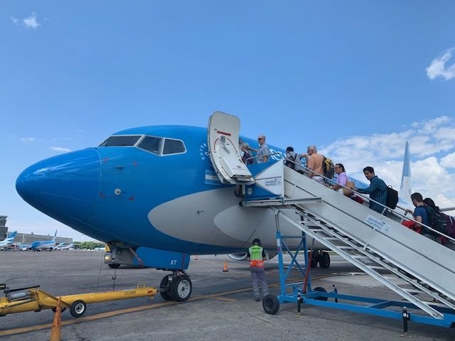 エセイサ国際空港からアエロパルケ空港まで地上で移動し、アエロパルケ空港からエルカラファテ空港まで利用しました。成田からエルカラファテ空港まで通しで購入できないので、アルゼンチン航空ネットサイトで直接チケットを購入しました。乗り換え失敗時にチケットを振替できないとトラブルの元なので、ほぼ通常価格のチケットなので前から2列目の席が確保できました。機内サービスは良くも悪くもなく普通でした。