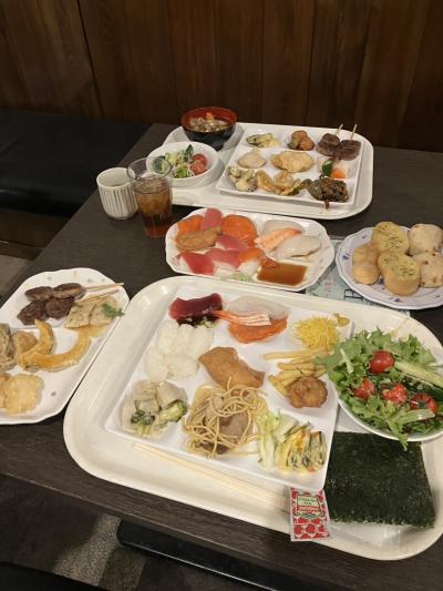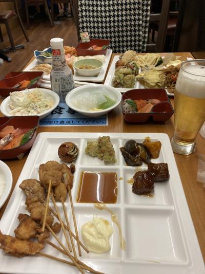 夕食はバイキング、地酒を中心に魚介類や鍋を楽しみ 〆はうどんをいただきました。