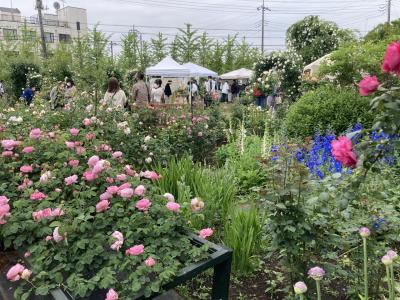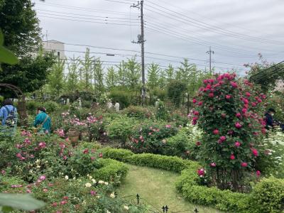広い敷地に様々なバラが見事に咲いています。