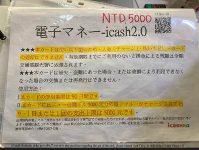 その後、カウンターでNT $5,000のカードをもらいました。私のもらったカードはセブンイレブン系のiCashでした。MTRは使えるが台鉄はNG セブンは使えるがファミマはNGなど制約が多くて戸惑いました。