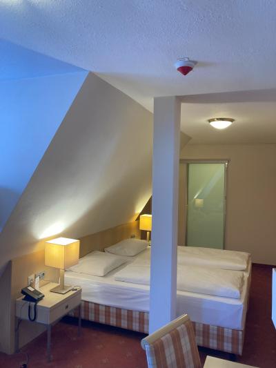 部屋はツインでした。ベッドサイズと硬さは良好。バスルームは、もう少し大きい方が良かったな。周囲からの騒音は全く無し。