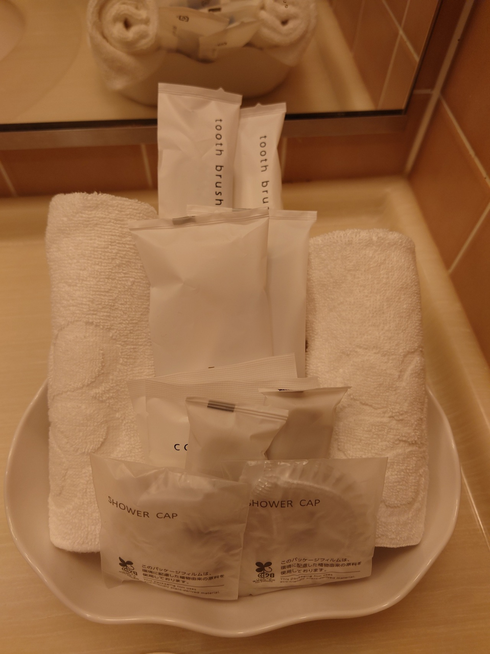 アメニティはパジャマ、歯ブラシ、タオルと十分。