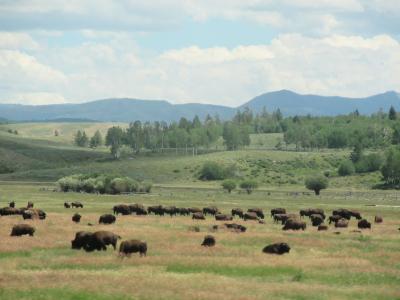 車窓から多くのバイソンをみることができました。