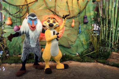 ラフィキとティモンとグリーティング。ここへは初めて来ました。入口から数...