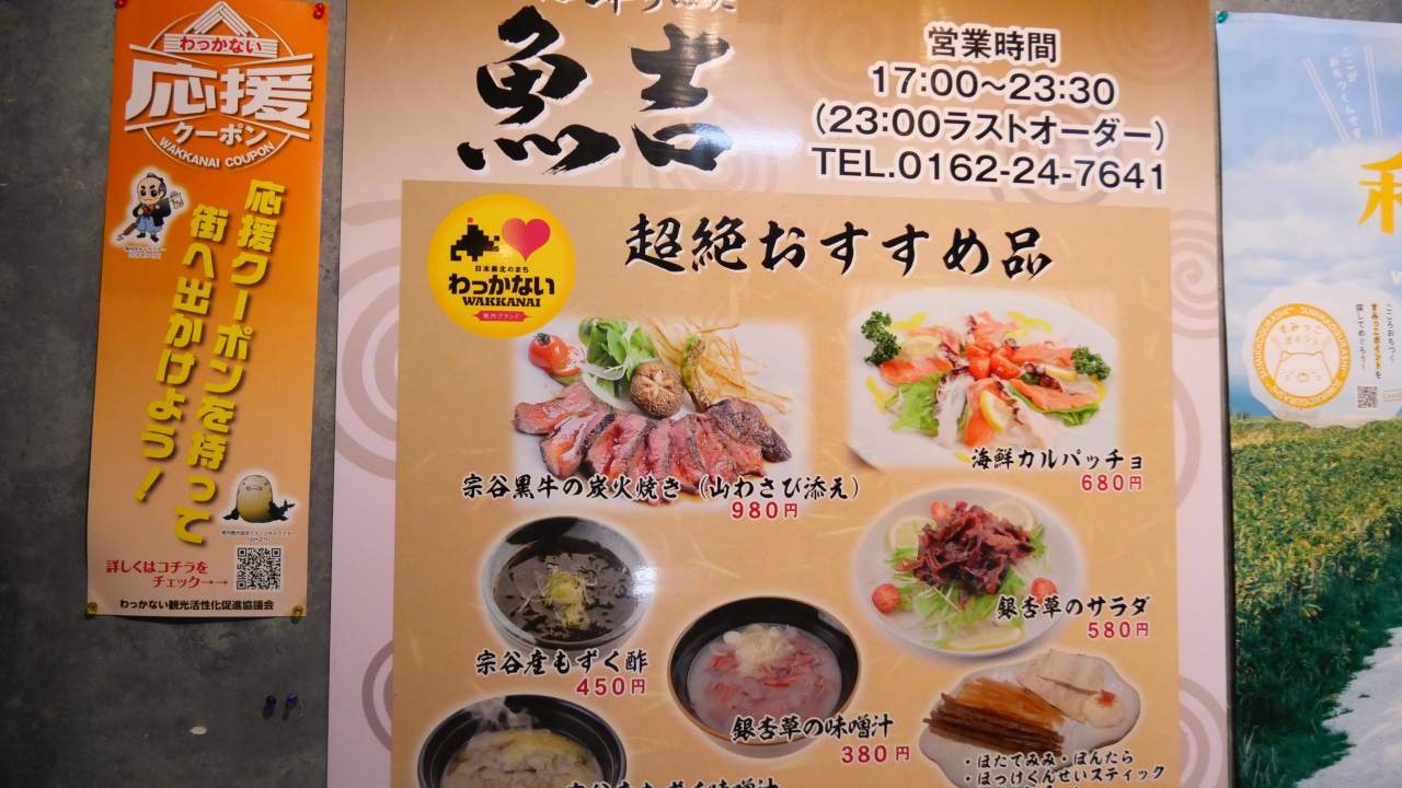 南稚内駅近くのホテルに宿泊し、夕食を食べられるところを探していて見つけました。