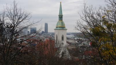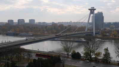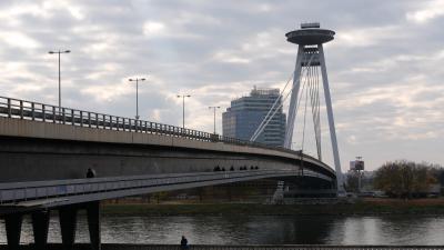 ウィーン空港からプラスチラヴァ市内に入ると新橋(SNP橋)を渡って中心部に入ります。