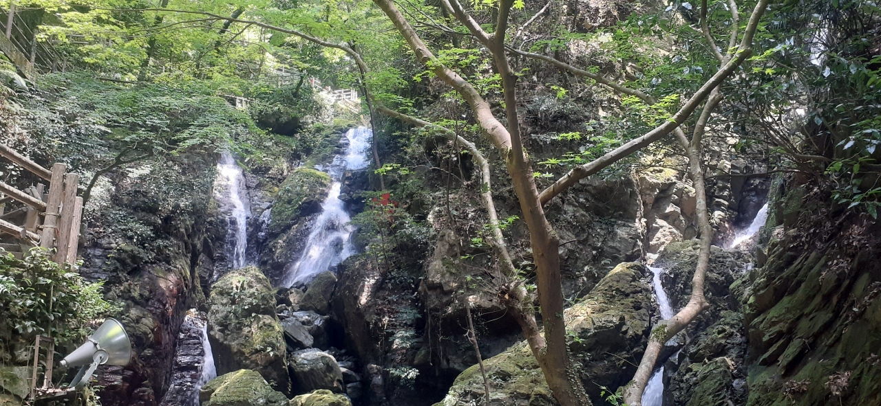 駐車場に車を止めて、頂上の休憩所までひたすら上っていくのですが、その途中に見ごたえのある滝が何本もありました。