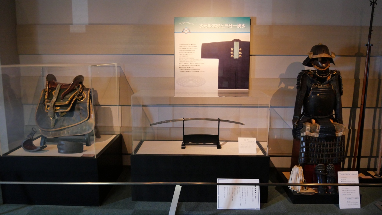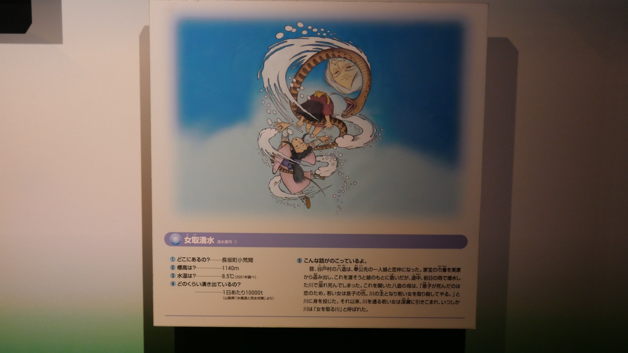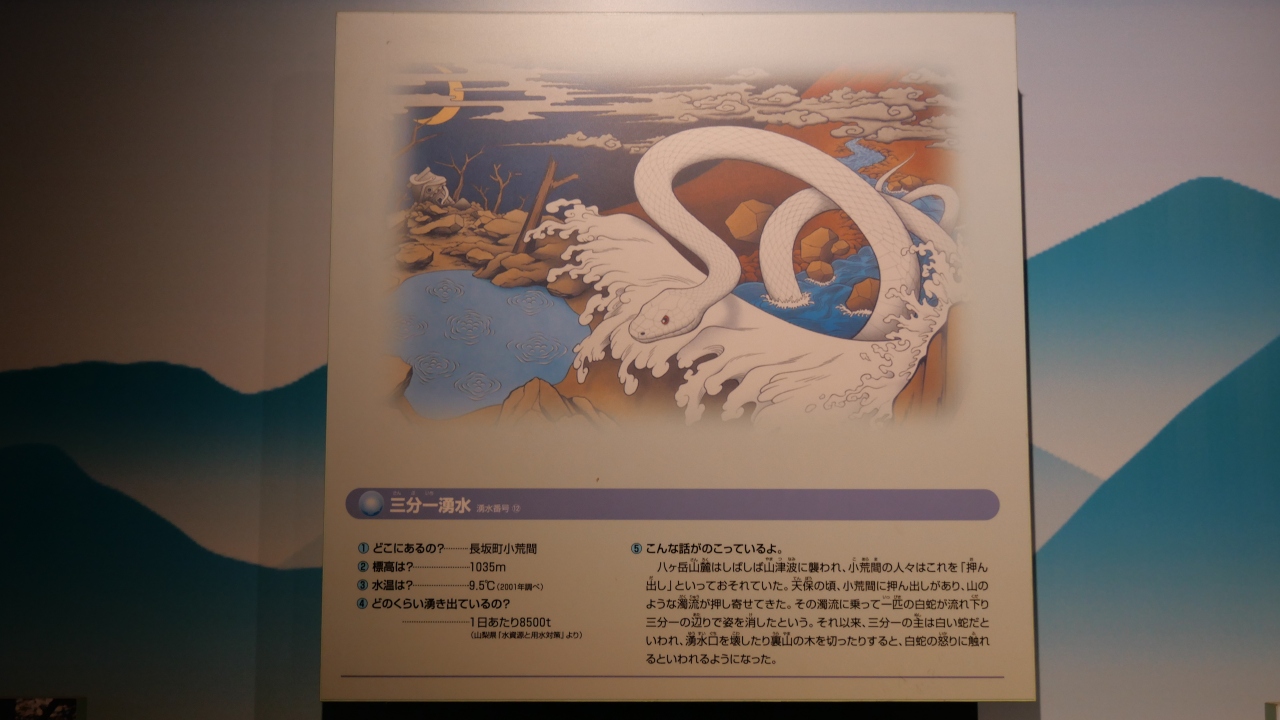 近くには資料館や物産販売店などもあり、湧き水の歴史、水元の家の鎧や太刀の展示、またここからスタートの信玄棒道ハイキングコースの紹介などがされていました。