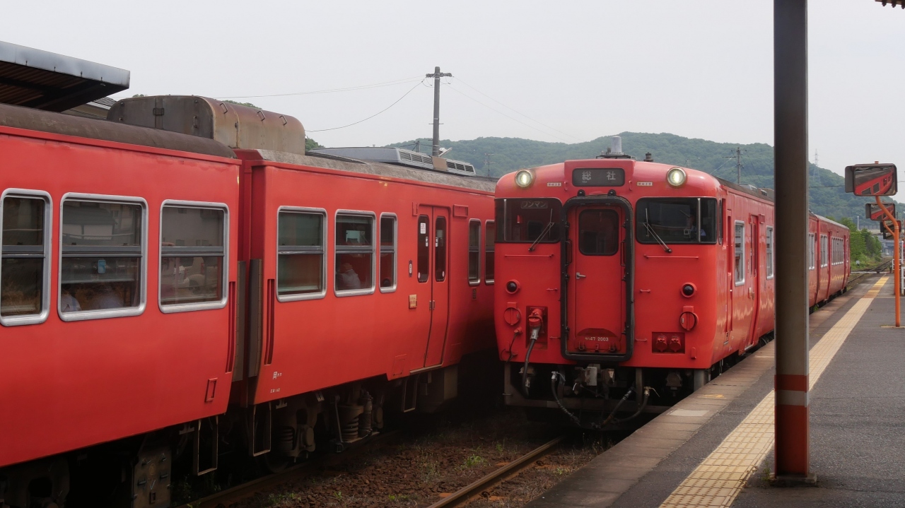 かつては岡山と鳥取を結ぶ急行列車などが多く運転されていましたが、今は普通列車だけになっています。