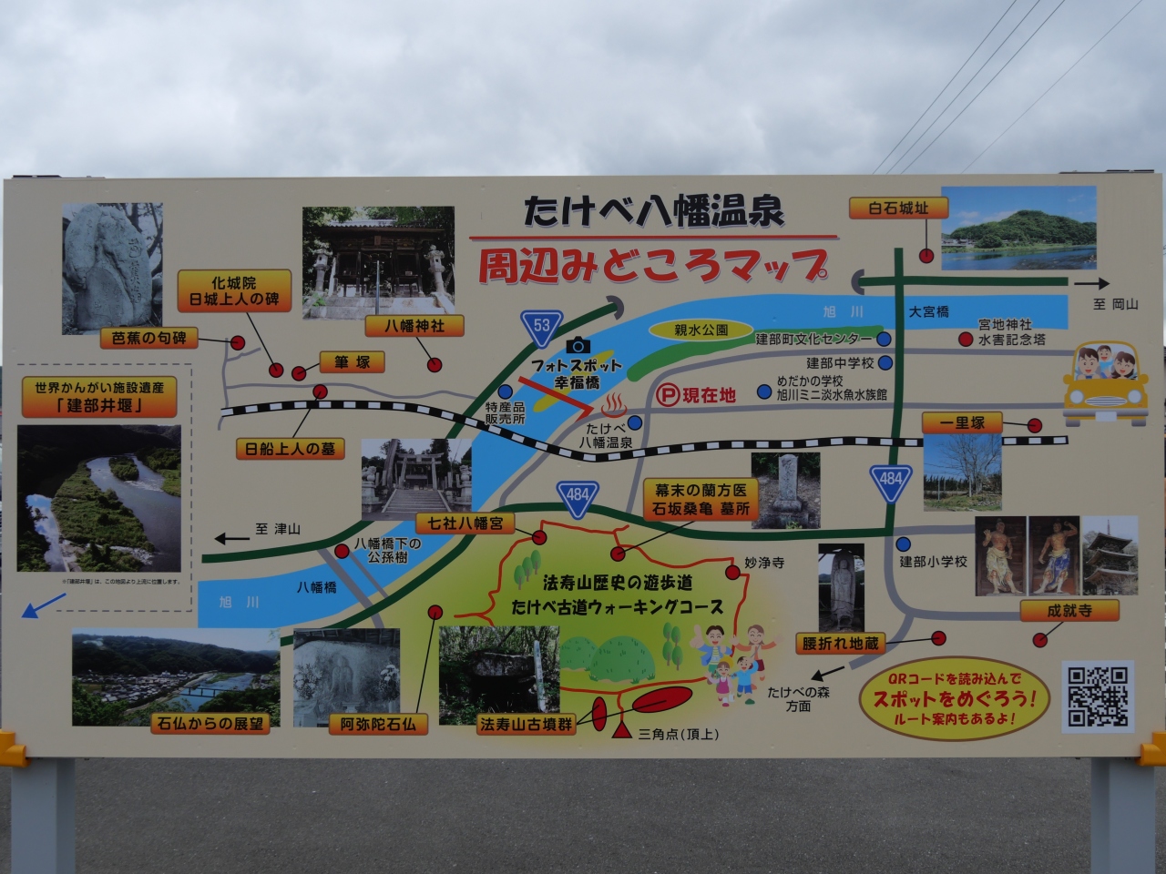 「たけべ」とありますが、JR津山線の最寄り駅は、建部駅ではなく、福渡駅です。