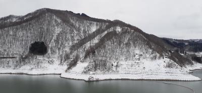 この付近には西川町の「月山湖」と鶴岡市の「あさひ月山湖」の2つの湖がありますが、「あさひ月山湖」の展望台です。