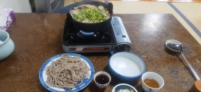 おすすめの「山菜そば」を注文、1500円と高めでしたが、なべにどっさり山菜が入っていて、「山菜そば」というより「山菜なべ」でした。