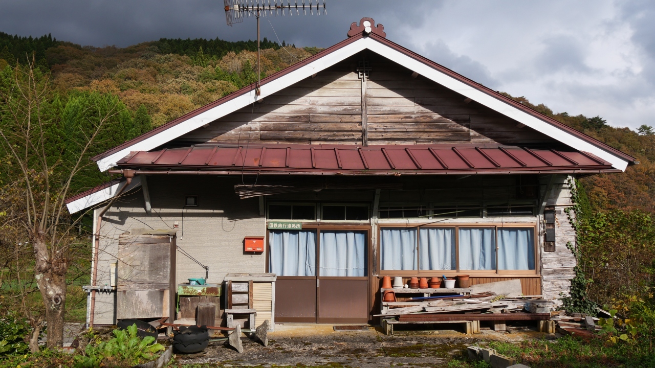 駅前には4軒の木造の建物がありますが、すべて廃墟となっています。