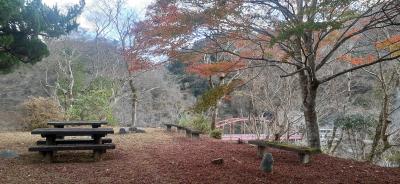 紅葉橋を渡り、神石町立民族資料館やおみやげ物店の集まるところに車を停めて、櫻橋~神龍橋までの散策コースを回りました。