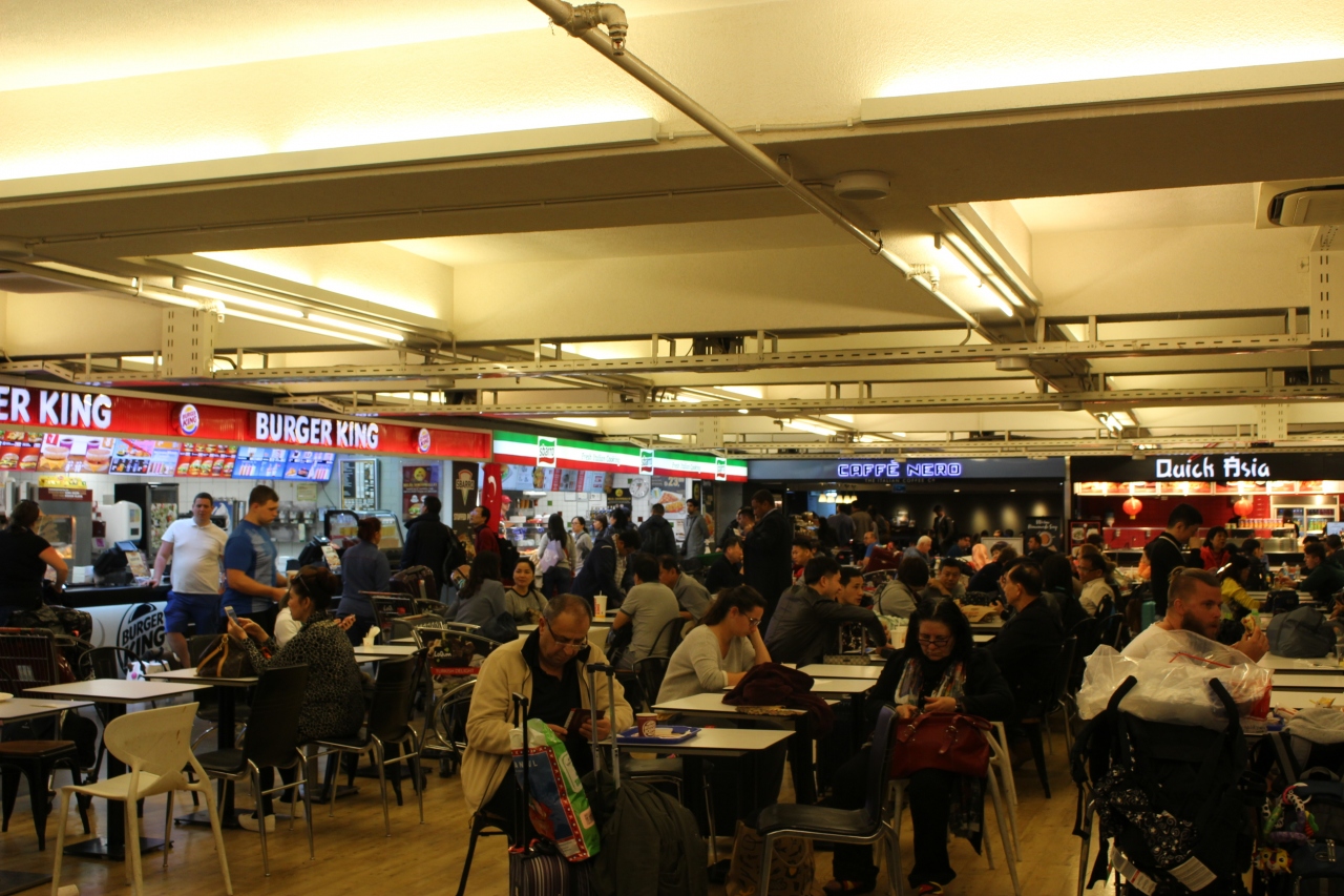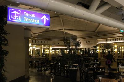 フードコートのある横のエスカレーターで上がって、「テラス」の表示にしたがったところです。