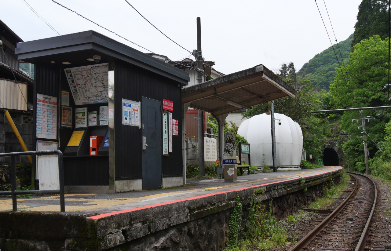 ホーム1本の停留所駅はともかく、トンネルの間に挟まれ、しかも山のがけっぷちにあるような駅。