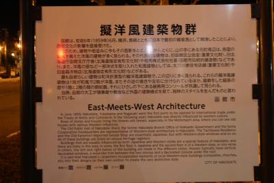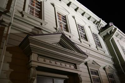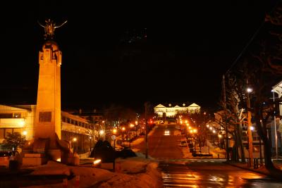 基坂の頂上にある函館公会堂との組み合わせは夜でしたが、とてもきれいに見えました。