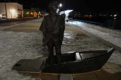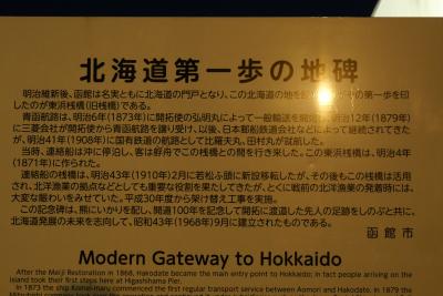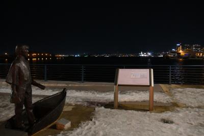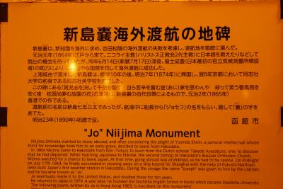 赤レンガ倉庫から函館の波止場沿いには、「赤い靴」の像、新島襄の銅像、北海道第一歩の記念碑などがありますが、この石碑は赤レンガ倉庫から一番遠いところにあります。