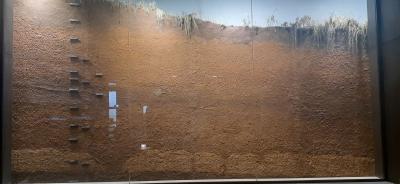 岩宿遺跡で石器の埋まっていた地層をドームで保存しています。