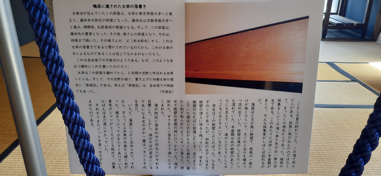 太宰が使っていた机なども保存展示されていました。- 旅行時期