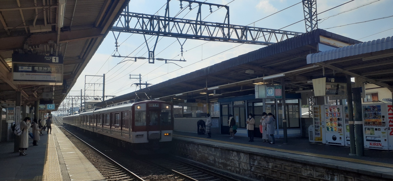 JR桜井線はローカル線なのでホームは閑散としていますが、近鉄大阪線は大阪へのメイン・ルートでもあり、乗り場は活気がありました。