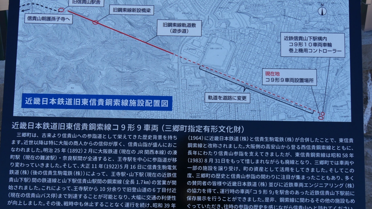 近鉄生駒線の信貴山下駅の前に保存展示されています。
