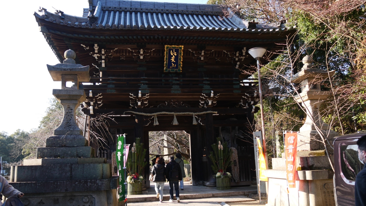 バスを降りて、門前町を通り、信貴山朝護孫子寺の山門前にあります。