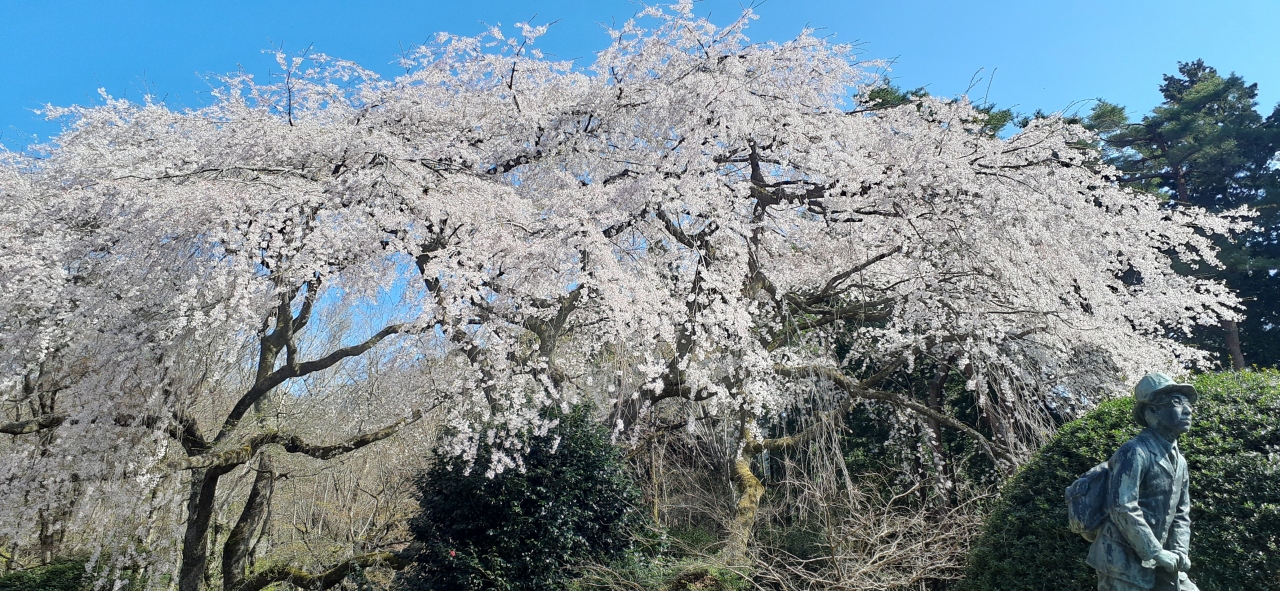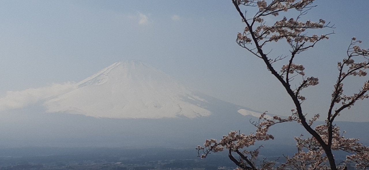 簡素な展望台があり、雪化粧の「白い」富士山と桜のコラボがみられます。